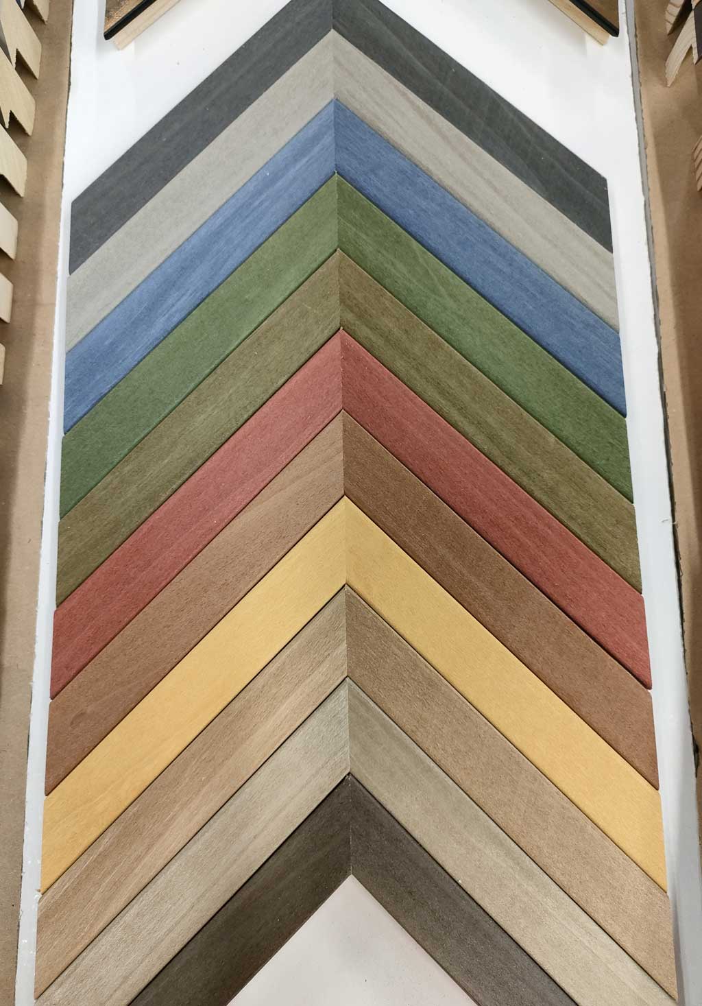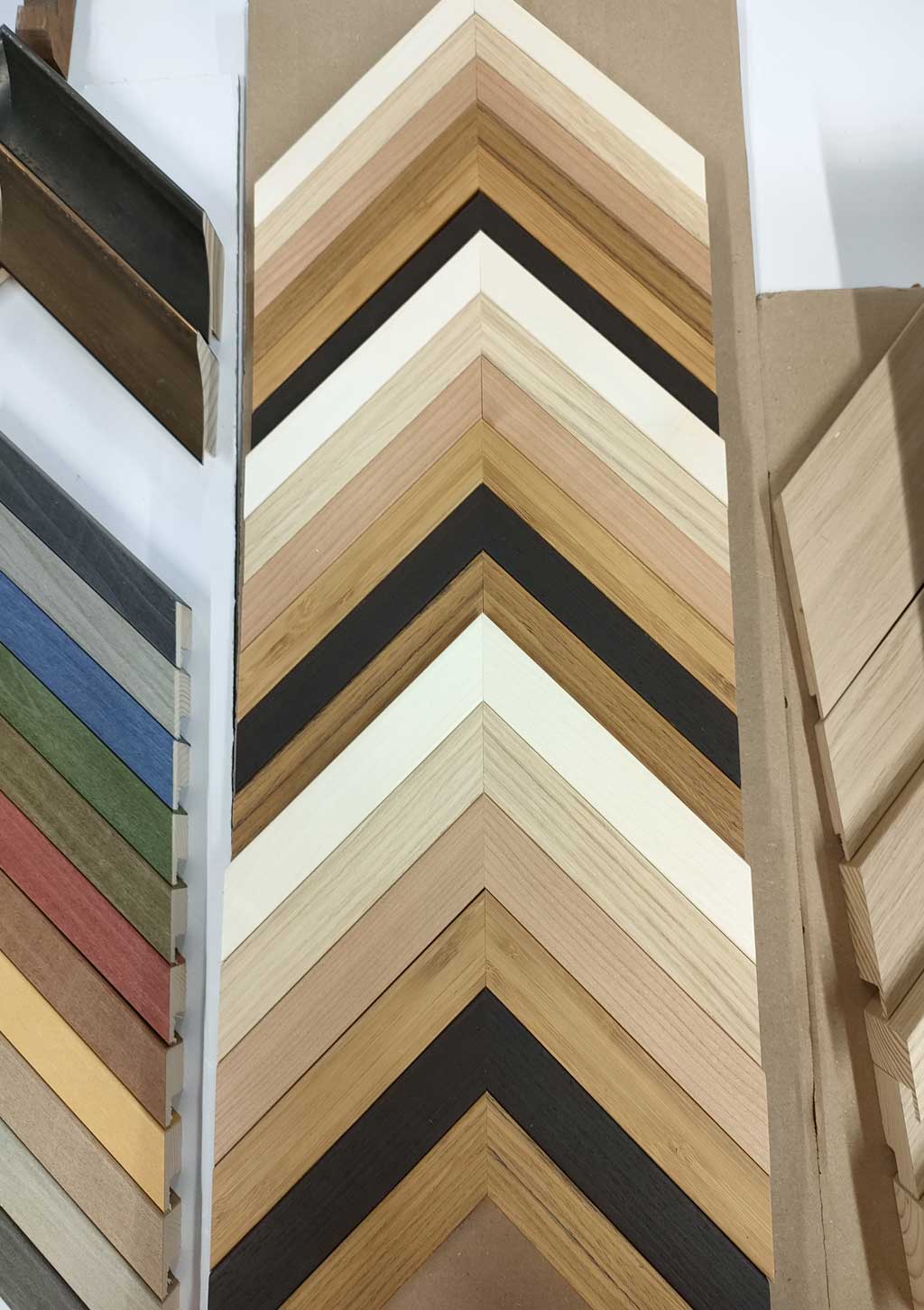 Impossible ici de dresser une liste exhaustive de toutes les techniques possibles. Les possibilités sont multiples aussi bien pour les passe-partout, un ou plusieurs décalés, avec ou sans dépassant, filets, lavis… que pour les biseaux, gorges, pavés… l’association des couleurs est essentielle.