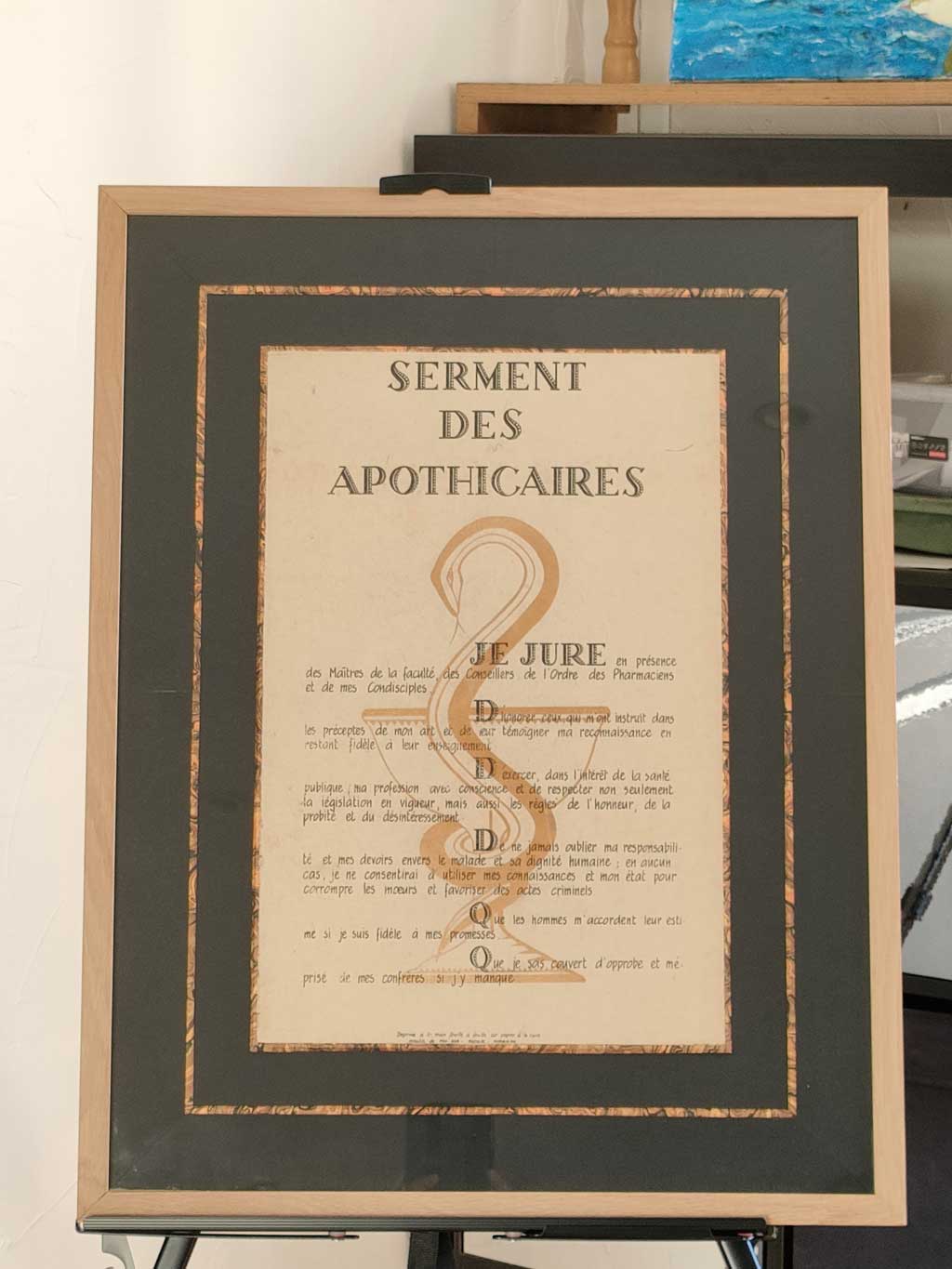 Encadrement du Serment des Apothicaires -